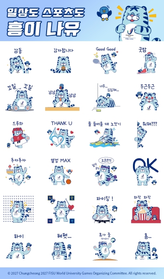 [파이낸셜경제=금윤지 기자] 2027 충청 유니버시아드대회 조직위원회는 대회 개최 D-500일을 기념해 마스코트 ‘흥이&나유’ 네이버 스티커를 19일 자정부터 네이버를 통해 1년간 무료 배포한다고 밝혔다.