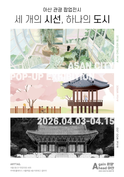 ‘세 개의 시선, 하나의 도시’라는 주제로 열리는 이번 팝업스토어는 아산 관광 12선을 세 명의 일러스트 작가(우주, 민데, 차일디시블루)의 독창적인 시각으로 재해석한 작품들을 선보이며, 기존의 관광 이미지에서 벗어나 젊고 감각적인 도시 이미지로서의 아산을 대중에게 전달할 예정이다.