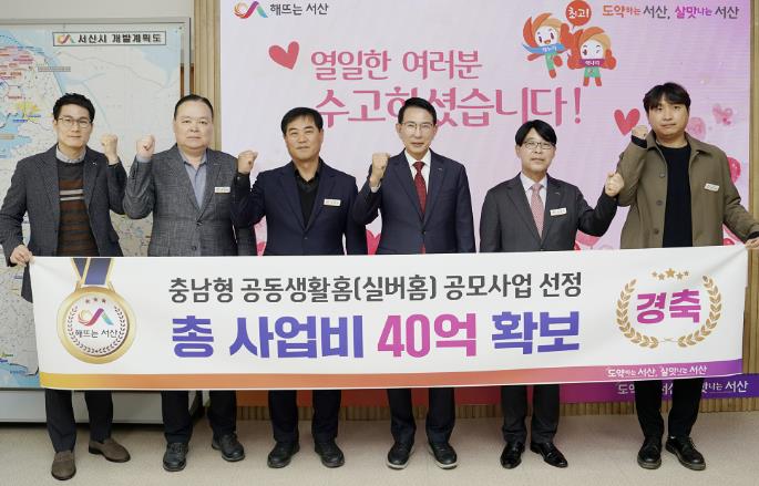 | ▲ 이완섭 서산시장, 관계 공무원들이 충남형 공동생활홈 조성사업 공모에 선정된 것을 기념했다 |