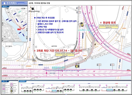 이번 교통통제는 ▲기존 광안대교 접속 구간 철거 ▲신축 이음장치 설치 ▲특수콘크리트(L.M.C) 교면포장 ▲안전 시설물 설치 등 작업 공간 확보와 건설노동자 및 주행차량 안전사고를 예방하기 위해 실시된다.