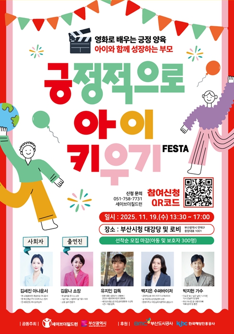 [파이낸셜경제=박영진 기자] 부산시와 세이브더칠드런은 오는 11월 19일 오후 1시 30분, 시청 대강당과 로비에서 '제7회 부산광역시 아동의 날 기념식'과 '긍정적으로 아이 키우기 페스타'를 개최한다고 밝혔다.