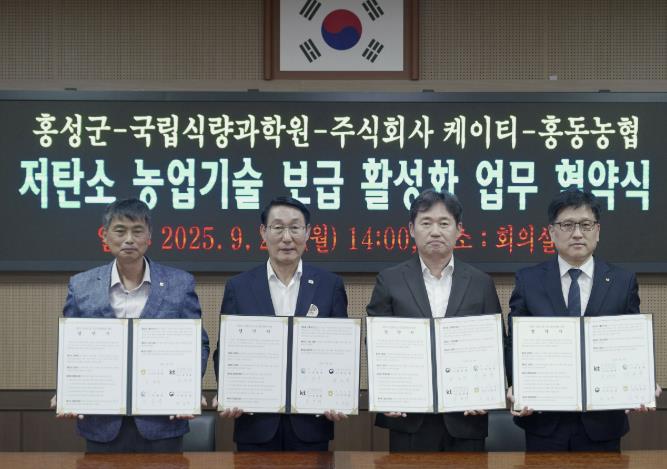 이번 협약에 따라 홍성군은 국립식량과학원이 개발한 저탄소 농업기술의 보급과 현장 지도를 담당하고, KT는 계측 데이터의 안정적 운영을 위한 통신 인프라를 지원하며, 홍동농협은 작목반 교육과 생산 관리 등 현장 적용에 중점을 두게 된다.