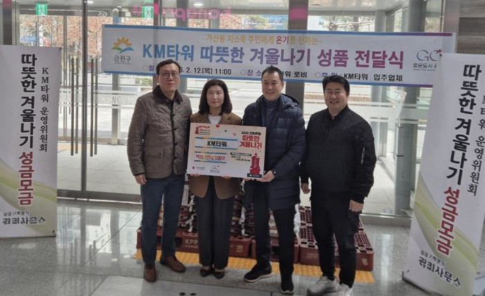 2월 12일 KM타워 운영위원회는 백미(10kg) 100포 총 300만 원 상당의 성품을 후원했다. 최재완 회장은 “지역사회와 상생하는 기업으로서 따뜻한 겨울나기 사업에 참여하게 되어 뜻깊다”라며, “앞으로도 지속적인 사회공헌 활동으로 지역사회와 함께하겠다”라고 전했다.