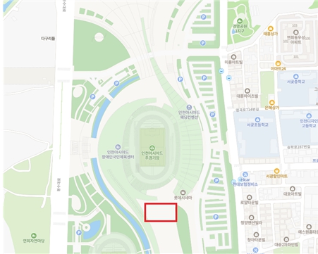 | ▲ 인천시설공단은 인천아시아드주경기장 남측광장(적색 상자)에서 야외 스케이트장을 이달 19일부터 내년 2월 18일까지 62일간 한시적으로 운영한다. |