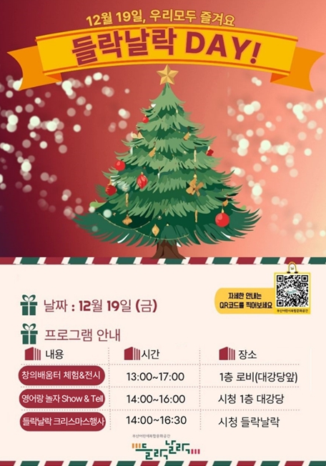 ‘들락날락 데이’는 ▲영어랑 놀자 성과발표회인 '쇼 앤드 텔(Show·Tell)' ▲창의배움터의 체험부스 운영과 전시 ▲시청 들락날락의 크리스마스 행사 등으로 진행된다.