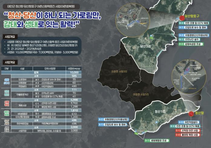 가세로 군수는 “2023년과 2024년에 이어 2026년 어촌신활력증진 사업 공모에도 태안지역이 선정돼 기쁘다”며 “많은 노력을 기울여 주신 주민 여러분께 감사드리고, 지역 중장기 발전을 이끌어갈 이번 어촌신활력 증진 사업이 차질 없이 추진될 수 있도록 노력하겠다”고 말했다.