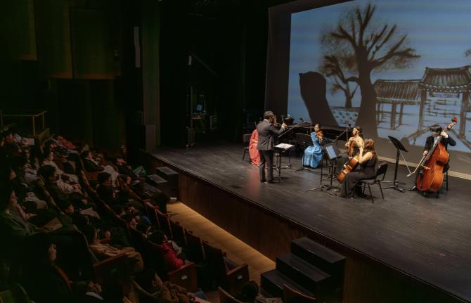 이번 공연은 홍성 지역의 네 공간 ▲홍북 ▲남당항 ▲광천 ▲홍주를 사계절로 재해석하고, 다시 ‘봄’의 계절로 5악장으로 구성했으며, 홍성의 고유한 정체성과 풍경을 음악으로 해석하여 관객에게 ‘기억의 풍경’을 선사했다. 특히 일부 악장에서는 스피카토 등 섬세한 연주기법을 활용해 지역의 생동감과 계절의 결을 표현하며, 음악적 완성도를 더욱 높였다.