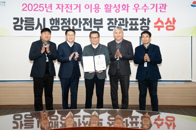 [파이낸셜경제=조성환 기자] 강릉시는 자전거 이용 촉진과 안전한 교통문화 정착에 기여한 공로를 인정받아 행정안전부 장관표창을 수상했다고 8일 밝혔다.
