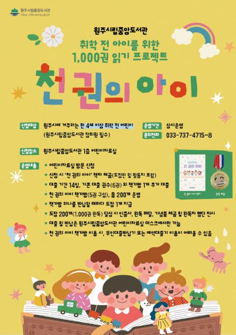 [파이낸셜경제=조성환 기자] 원주시립중앙도서관은 올해부터 ‘천 권의 아이’ 프로그램을 새롭게 개편해 운영한다.