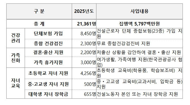 | ▲ 2025년 건설 노동자 지원사업 현황 |