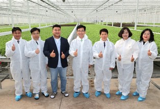 | ▲ 윤재성 성북복지재단 이사장(오른쪽 두 번째)과 관계자들이 기념 촬영을 하고 있다 |