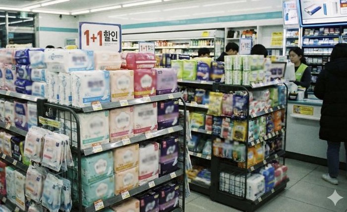 | ▲ 편의점에 진열된 여성 생리용품 (AI 생성 이미지). 부천시는 여성청소년 생리용품 보편지원 사업을 전면 시행할 예정이다. |
