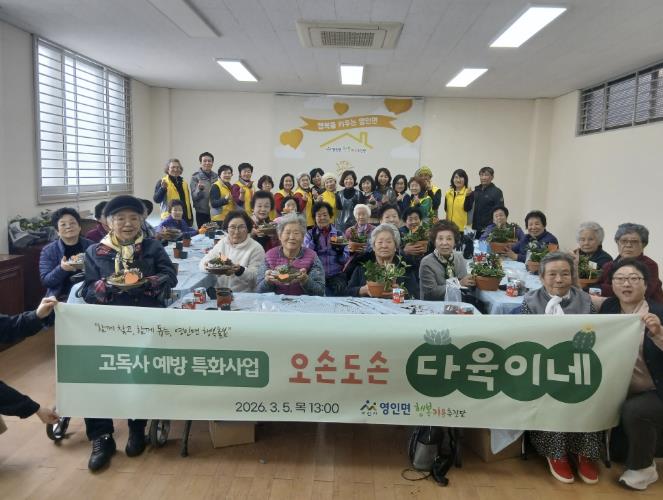 [파이낸셜경제=김영란 기자] 영인면행복키움추진단은 지난 5일 고독사 예방을 위해 독거어르신 80여 명을 대상으로 '반려식물(다육이) 꾸미기 및 나눔 프로그램'을 진행했다.