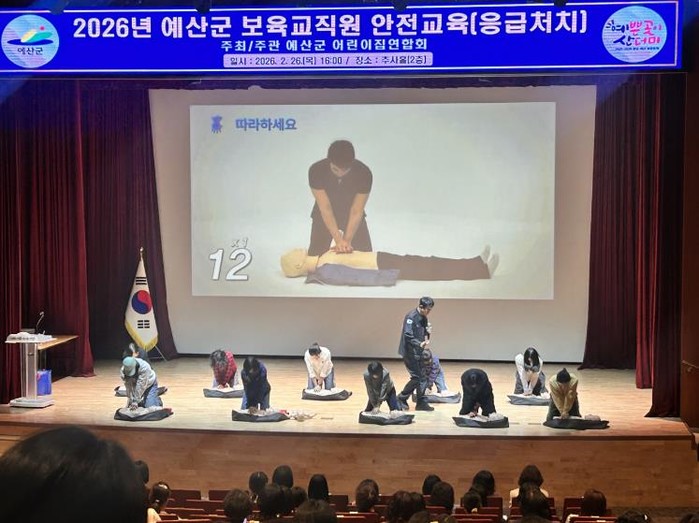 [파이낸셜경제=김영란 기자] 예산군은 26일 예산군청 추사홀에서 예산군 관내 보육교직원 250여 명을 대상으로 심폐소생술 등 안전교육을 실시했다.