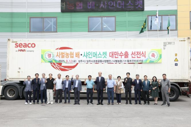 [파이낸셜경제=김지훈 기자] 상주시 사벌국면 사벌농업협동조합은 9월 12일 사벌농협 농산물 유통센터에서 2025년산 신고배와 샤인머스켓 대만수출 선적식을 가졌다.