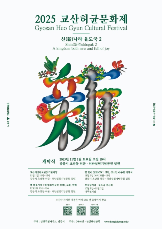 '교산허균문화제'는 교산 허균의 개혁 사상과 문학적 정신을 기리고 계승하는 자리로, 가을 정취가 짙게 물든 초당 솔밭에서 시민과 관광객이 함께 어우러지는 참여형 문화행사로 꾸며진다.