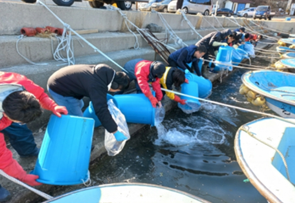 | ▲ 대구 자어방류 광경 (2025년) |