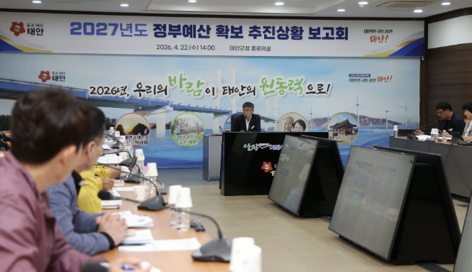 [파이낸셜경제=김영란 기자] 태안군이 22일 군청 중회의실에서 이주영 부군수와 각 부서장 등 30여 명이 참석한 가운데 ‘2027년도 정부예산 확보 추진 상황 보고회’를 열고 부처 예산안 반영 현황을 점검하며 세부 대응 전략 논의에 나섰다.