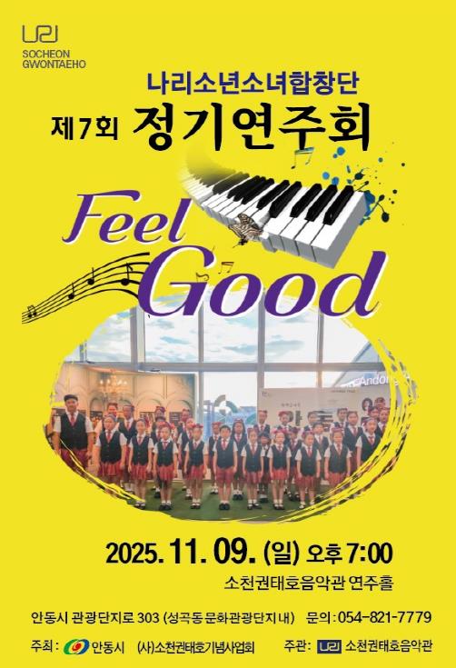 [파이낸셜경제=김지훈 기자] (사)소천권태호선생기념사업회가 주최․주관하는 ‘제7회 나리소년소녀합창단 정기연주회’가 11월 9일 오후 7시, 소천권태호음악관 실내 연주홀에서 개최된다.