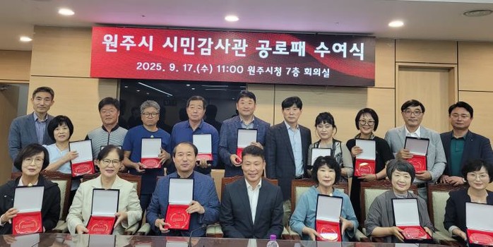 [파이낸셜경제=조성환 기자] 원주시는 지난 17일 시청 7층 회의실에서 시민감사관 공로패 수여식을 개최했다.