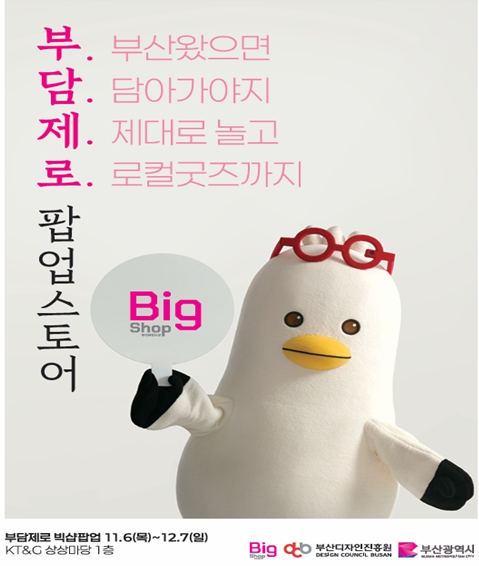 [파이낸셜경제=박영진 기자] 부산시와 (재)부산디자인진흥원은 부산의 감성을 체험할 수 있는 '부담제로, 브랜드숍 반짝 매장(팝업스토어)'을 오늘(6일)부터 12월 7일까지 케이티앤지(KT·G) 상상마당 부산(부산진구 부전동) 1층에서 운영한다고 밝혔다.