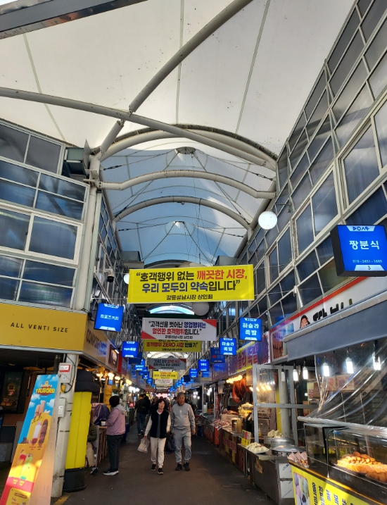 강릉성남시장은 다양한 먹거리로 유명해 강릉을 방문하는 관광객들이 꼭 들르는 명소로, 주말과 연휴에는 전국 각지에서 몰려든 관광객들로 붐비는 곳이다.