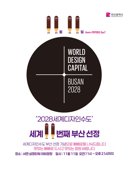 ‘빼빼로데이’라는 대중적 기념일과 부산이 11번째 세계디자인수도로 선정된 상징성을 결합해, 시민이 직접 참여하고 즐기는 체험형 홍보 캠페인을 진행한다.
