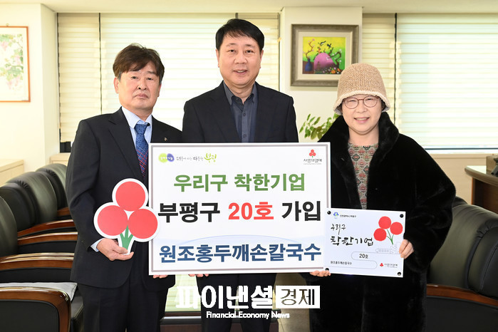 [파이낸셜경제=김기보 기자] 부평구는 3일 원조홍두깨손칼국수가 ‘우리구 착한기업’ 부평구 제20호로 가입했다고 밝혔다.