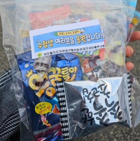 ‘수능 수험생 격려 행사’는 “연제구 새마을단체에서 2015년도부터 시작하여 매년 시행하고 있는 사업이며, 격려 초코렛(사탕)은 새마을지도자협의회와 새마을부녀회가 자체 회비로 마련한 것으로, 구청 예산(보조금)은 사용되지 않았다”고 밝혔다.