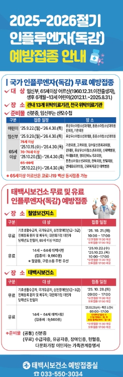▲ 태백시, 인플루엔자(독감) 예방접종 3주 |