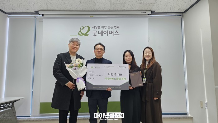 [파이낸셜경제=김기보 기자] 18일(월), 굿네이버스 경기남부지부(지부장 전재규)는 이강우 디스커버리네이처스케이프 대표를 ‘더네이버스클럽’에 등재했다. 이날 등재식은 굿네이버스 경기남부지부에서 열렸으며, 이강우 디스커버리네이처스케이프 대표 및 임직원을 비롯해 굿네이버스 경기남부지부 직원들이 참석해 자리를 빛냈다.
