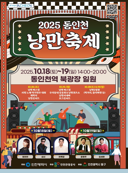 [파이낸셜경제=김기보 기자] 인천광역시는 오는 10월 18일부터 19일까지 이틀간 동인천역 북광장에서 ‘2025년 동인천 낭만축제’를 개최한다고 밝혔다.