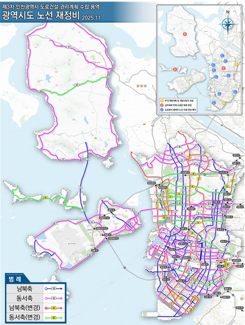 또한 청라·북항 일대에는 도시 확장과 물류 수요 증가에 대응하기 위해 79·80호선 2개 노선이 지정됐고, 서창2지구의 공용 중인 도로인 서창남로·서창방산로, 서창순환로 등 2개 노선(88·89호선)도 신규로 광역시도에 포함됐다.