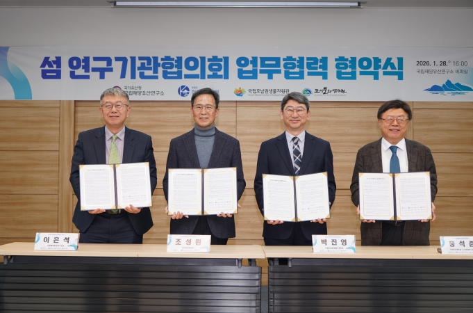 [파이낸셜경제=김예빈 기자] 기후에너지환경부 산하 국립호남권생물자원관(관장 박진영)은 국립해양유산연구소, 한국섬진흥원, 국립목포대학교 도서문화연구원과 함께 2026년 1월 28일 국립해양유산연구소(전남 목포시 소재)에서 '섬 연구기관 협의회' 출범을 위한 업무협약을 체결했다.