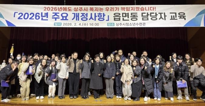[파이낸셜경제=김지훈 기자] 상주시에서는 지난 4일 청소년수련관에서 읍면동 공무원을 대상으로 2026년 주요 복지사업 개정사항에 대한 전달교육을 실시했다.