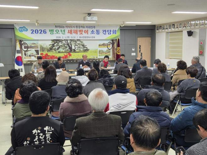 이날 간담회에는 강영석 상주시장이 참석해 2026년 주요 시정 추진 사항과 시정 운영 방향에 대해 직접 설명하며 주민 이해를 높였고, 이어진 ‘주민과의 대화’ 시간에는 지역 현안 전반에 대한 주민 의견을 폭넓게 청취하며 현장에서 체감하는 애로사항과 바람을 허심탄회하게 나누는 등 소통 행정의 공감대를 형성했다.