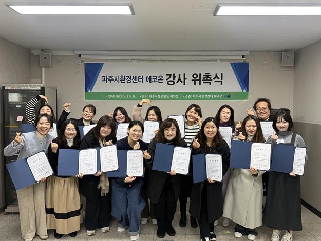 ‘에코온’의 첫 공식 강사로 위촉된 이들은 앞으로 파주시민을 대상으로 유아, 초등, 중고등학생은 물론 성인과 가족 단위에 이르기까지 폭넓은 환경교육 프로그램을 담당하게 된다. 이들은 파주시와 경기도가 지원하는 유아기후환경교육관을 비롯해 학교, 공공기관 등 다양한 현장에서 교육을 운영하며, 시민들이 일상 속에서 환경 감수성을 키우고 ‘지구 시민’으로 성장할 수 있도록 돕는 역할을 수행할 예정이다.