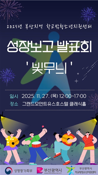 [파이낸셜경제=박영진 기자] 부산시는 27일 낮 12시 남구 그랜드모먼트 유스호스텔에서 '2025년 부산지역 꿈드림 성장보고 발표회 '빛무늬''가 열린다고 밝혔다.