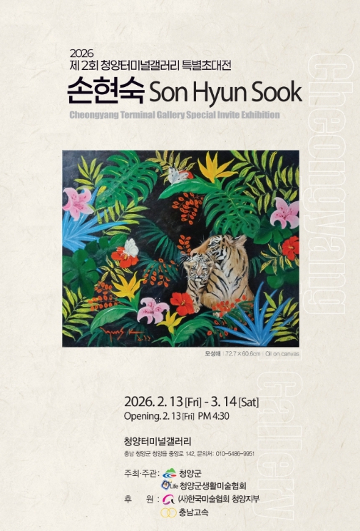 협회는 지난 13일부터 오는 3월 14일까지 청양 시외버스터미널 내 위치한 ‘터미널갤러리’에서 제2회 특별초대전인 ‘손현숙 작가전’을 개최한다고 밝혔다.