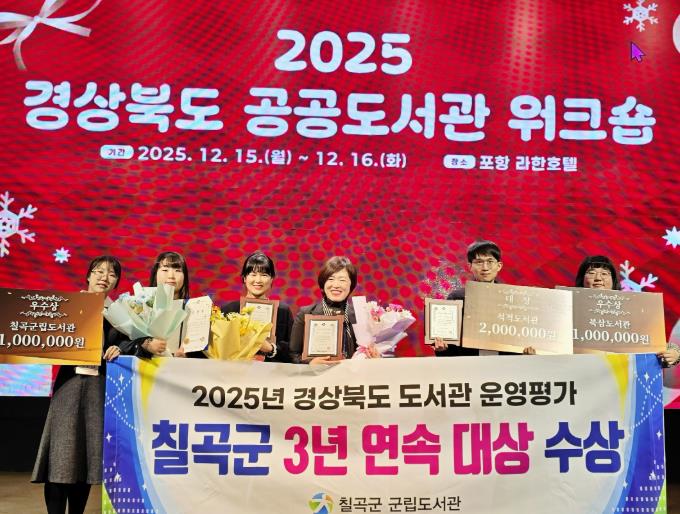 [파이낸셜경제=김지훈 기자] 칠곡군립도서관은 경북도서관에서 주관한‘2025년 공공도서관 운영평가’에서 3년 연속 대상’을 수상했다고 밝혔다.