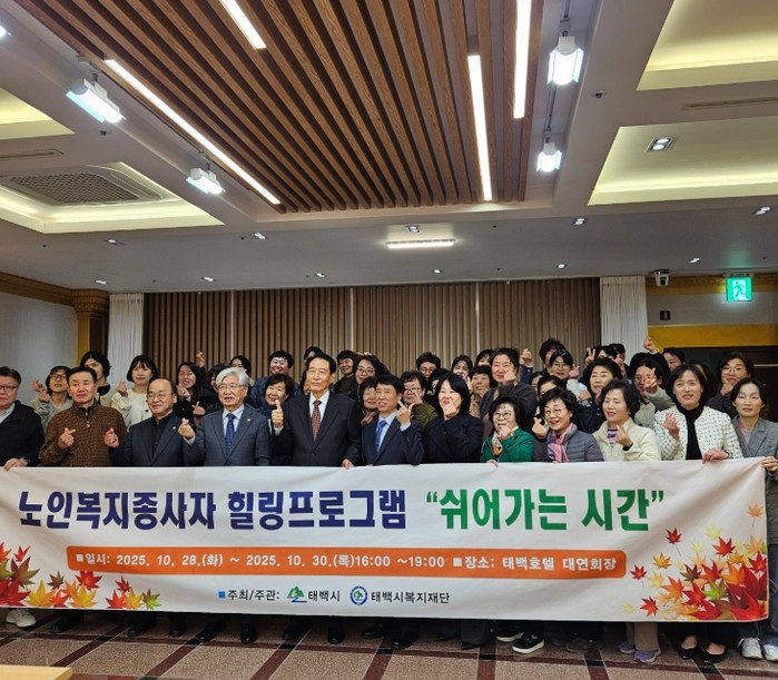 [파이낸셜경제=조성환 기자] 태백시복지재단은 10월 28일부터 30일까지 3일간 관내 노인복지시설 종사자 180명을 대상으로 ‘노인복지종사자 힐링프로그램 '쉬어가는 시간'’을 운영했다.