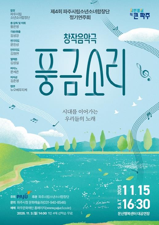 [파이낸셜경제=김기보 기자] 파주시는 오는 15일 16시 30분, 문산행복센터 대공연장에서 파주시립소년소녀합창단 제4회 정기연주회 ‘풍금소리’를 개최한다고 밝혔다.