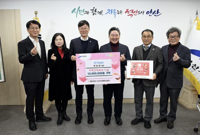이에 이민근 안산시장은 “지역 인재 육성을 위해 뜻깊은 장학금을 기탁해 주신 (주)한국R&D 대표님과 관계자분들께 깊은 감사를 드린다”며 “기탁해 주신 장학금은 안산의 우수한 미래 성장동력을 키우는 데 소중히 쓰일 수 있도록 하겠다”고 말했다.