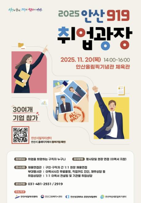 한편, 안산시는 지난 9월 경기도와 공동으로 ‘안산시 스마트허브 2040·경기도 5070 통합 일자리박람회’를 개최해 40개 기업 면접에 1,300여 명이 참여한 바 있다.