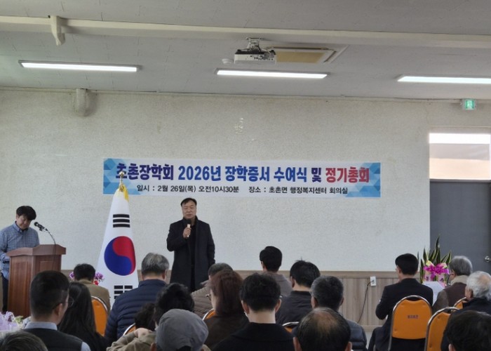 [파이낸셜경제=김영란 기자] 초촌장학회는 초촌면행정복지센터 회의실에서 '2026년 초촌장학회 장학증서 수여식 및 정기총회'을 개최했다고 3일 밝혔다.