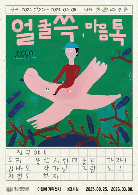[파이낸셜경제=김예빈 기자] 울산시립미술관은 오는 9월 25일부터 내년 3월 8일까지 1층 3전시실과 로비에서 어린이전시 ‘얼굴 쓱, 마음 톡’을 연다고 밝혔다.