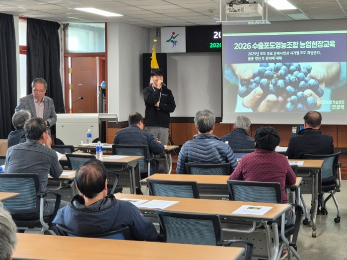 교육에서는 생육 단계별 과원관리 요령과 안정적인 수형 형성을 위한 관리 방법 등을 중심으로 설명해, 수출용 포도의 품질 향상과 생산성 제고에 실질적인 도움을 제공했다.