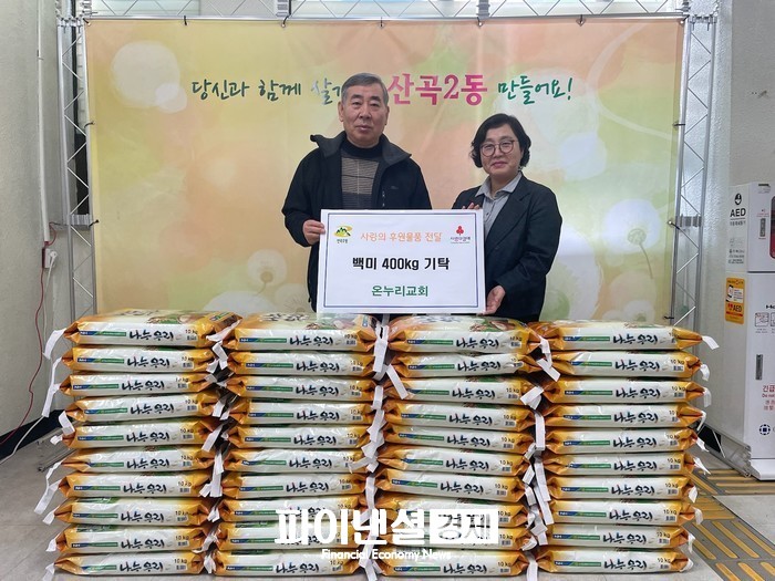 [파이낸셜경제=김기보 기자] 부평구(구청장 차준택) 산곡2동은 지난 27일 지역 내 위치한 온누리교회로부터 백미 400㎏을 전달받았다.