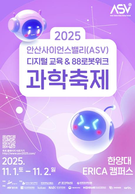 [파이낸셜경제=김기보 기자] 안산시는 11월 1일부터 2일까지 이틀간 한양대학교 ERICA캠퍼스에서 ‘미래와 함께하는 혁신도시 안산, ASV’라는 슬로건으로 ‘2025 안산사이언스밸리(ASV) 과학축제’를 개최한다고 22일 밝혔다.