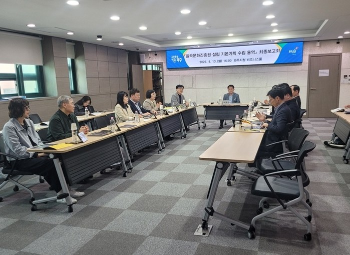 이번 보고회에서는 최병갑 파주시 부시장을 비롯해 경기도 문화정책과, 파주문화원, 학계 전문가 및 자문 위원, 관계 공무원 등 20여 명이 참석해 최종 용역 결과를 공유하고 진흥원 설립의 타당성과 향후 역할 등에 대해 심도 있는 의견을 나눴다.